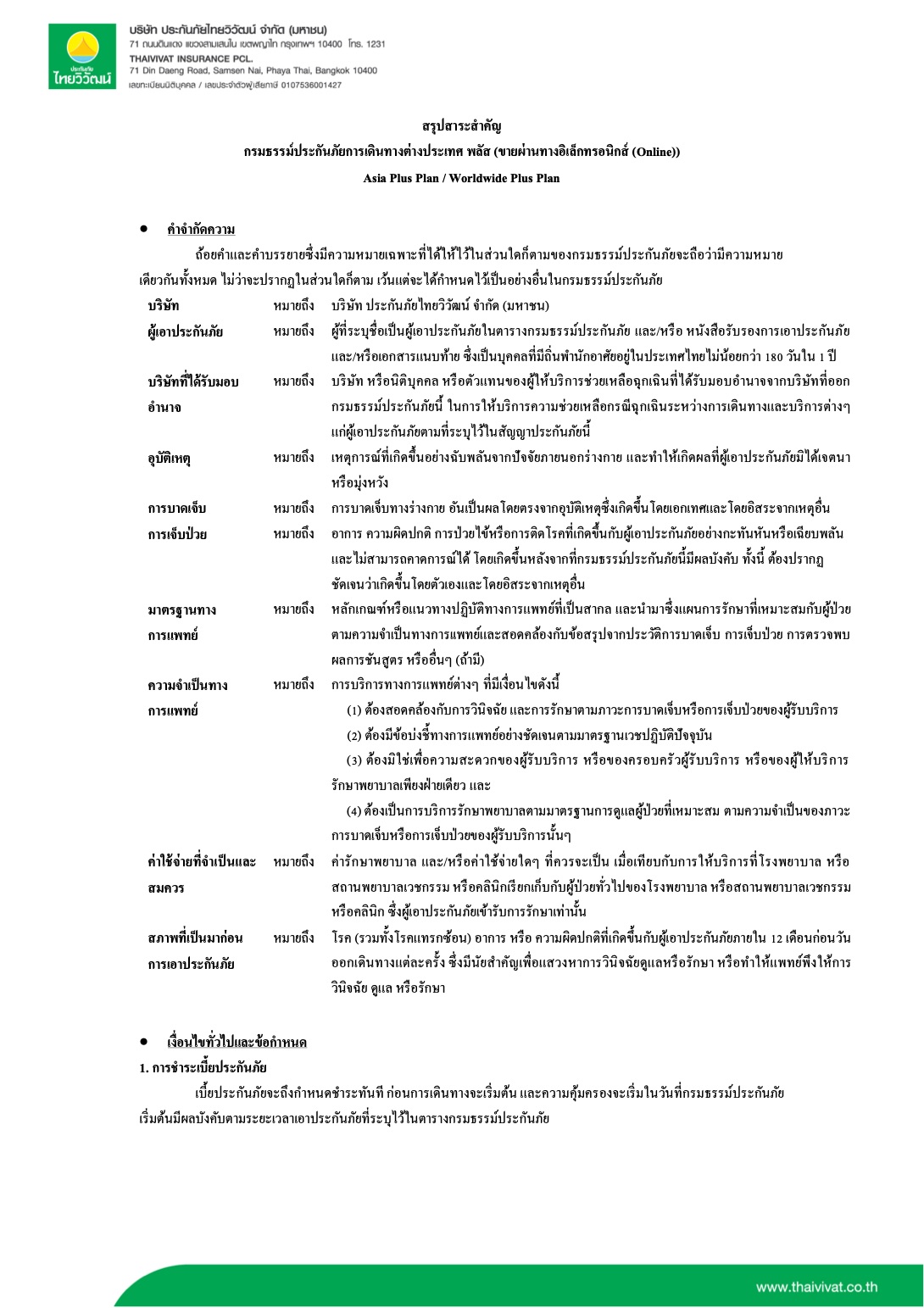 1. การประกันภัยอุบัติเหตุส่วนบุคคล อ.บ.1* / Personal Accident Benefit 2,000,000 2,000,000 3,000,000 5,000,000